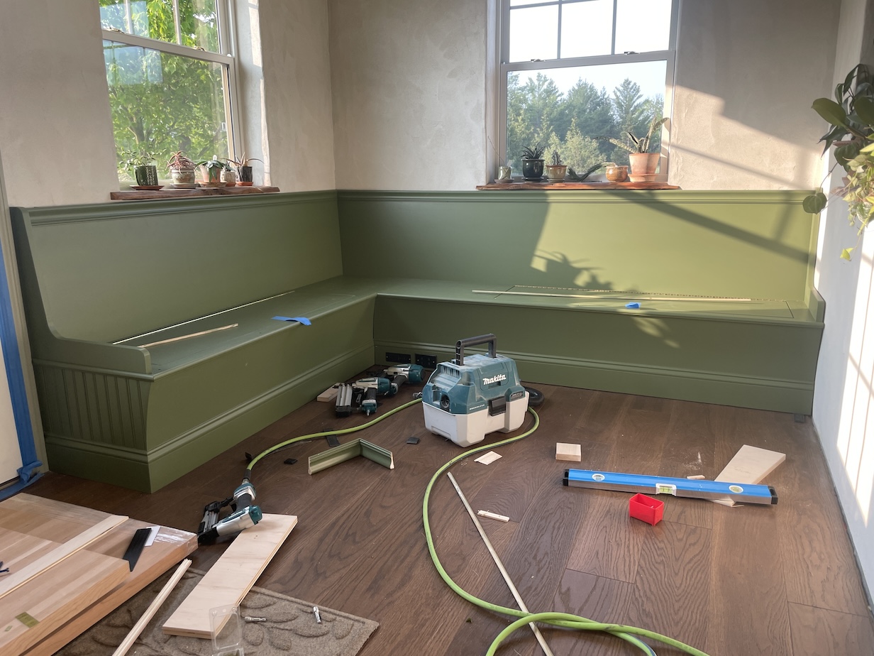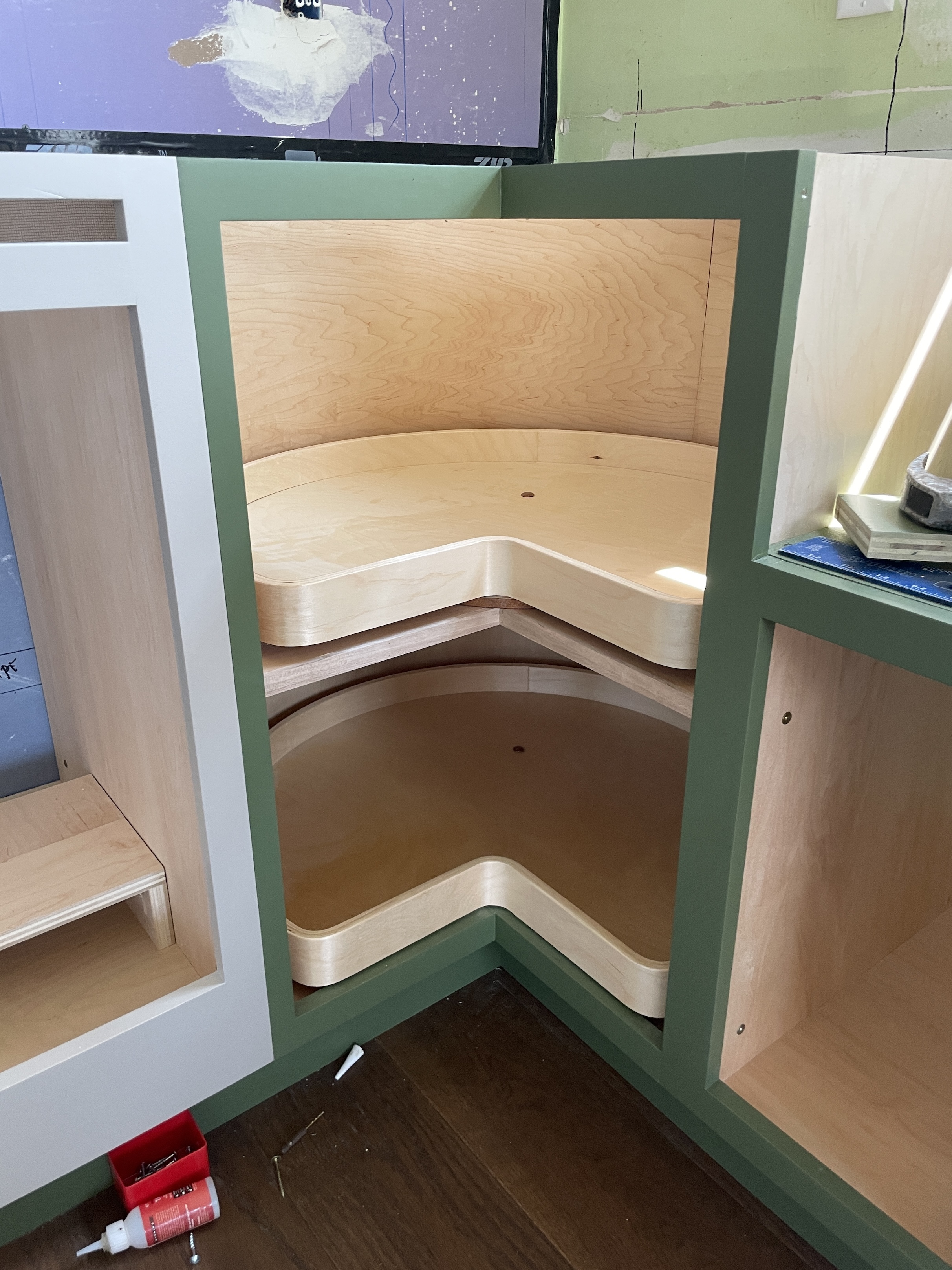 Sander built the cabinets using a computer program called Fusion 360 to get the sizing right. “There are so many good cabinet-making tutorials on Youtube” he says, adding that they’re also lucky to have a kitchen fabrication shop around the corner run by guy name Blue—”he walked Sander through the process and loaned me tools.”