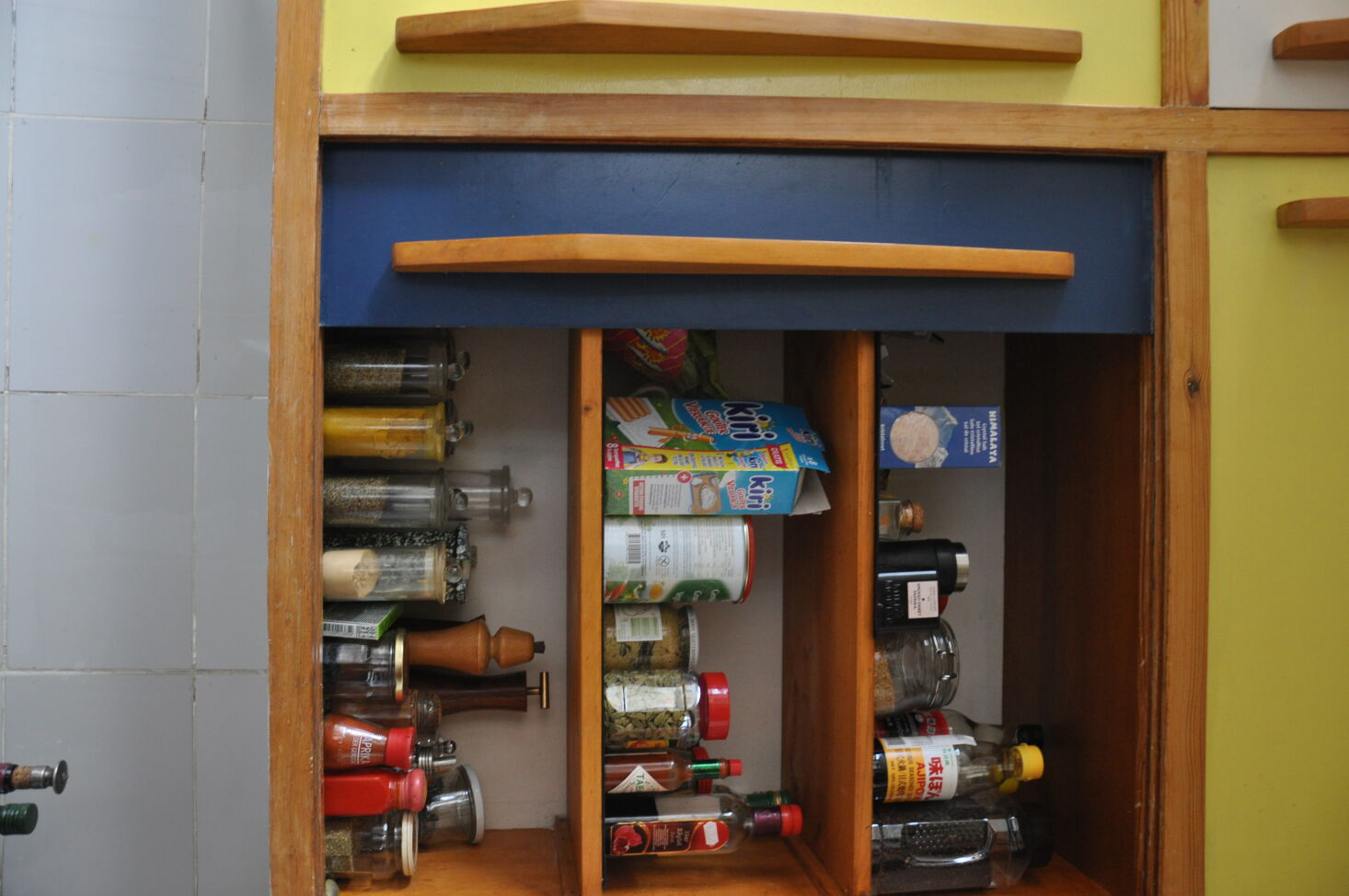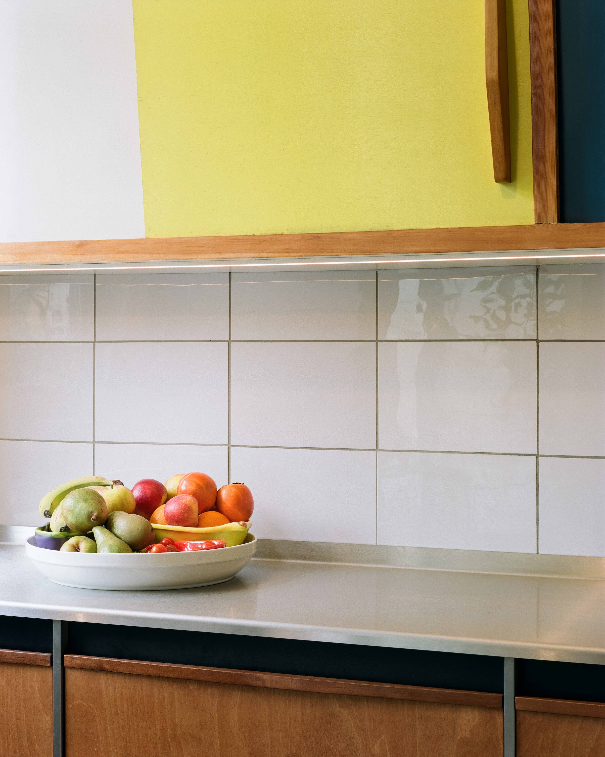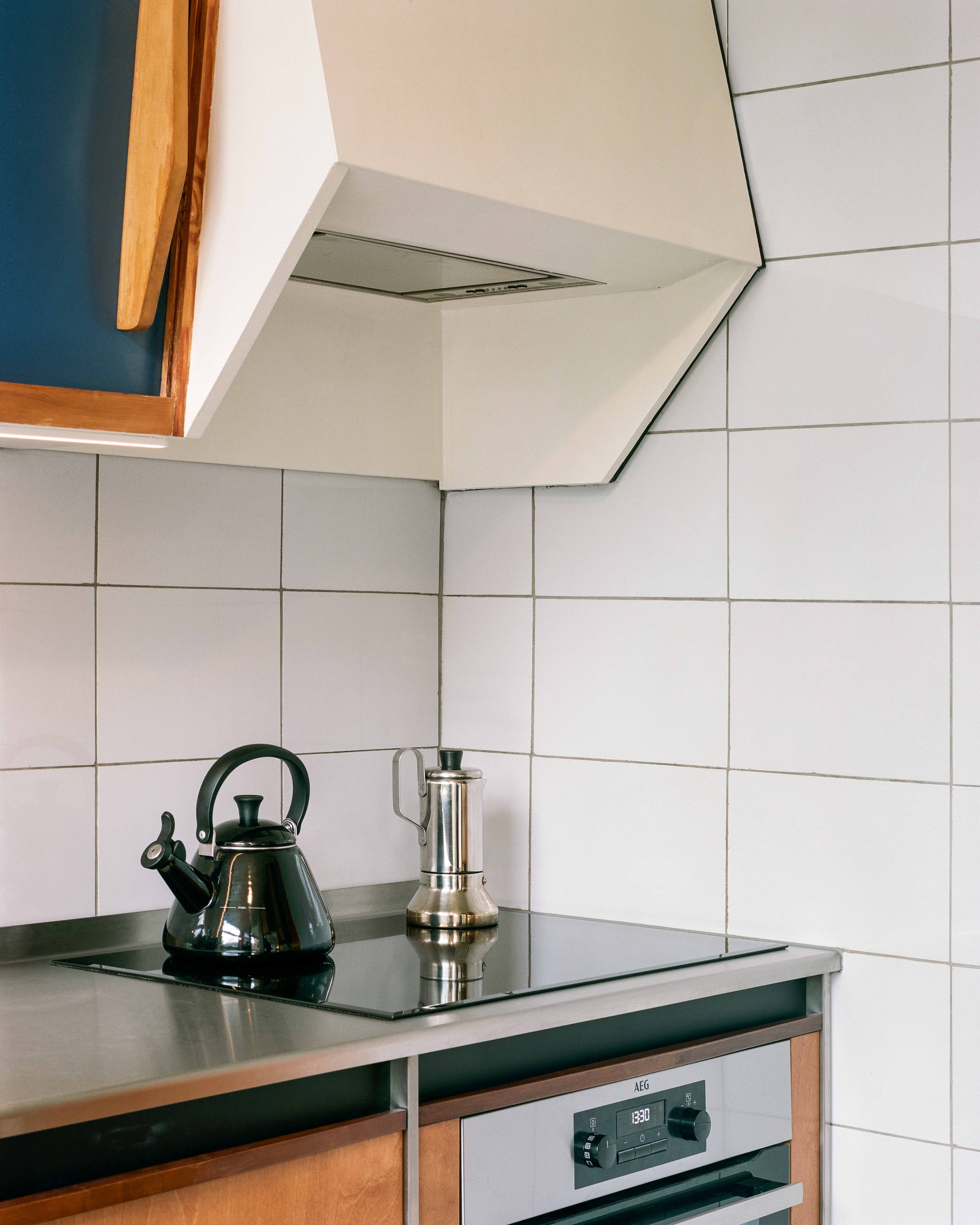 The couple enlisted architect Arthur Verraes of Atelier Avondzon for the job. They had discovered Verraes’s work on Instagram and are proud of the fact that, like Van der Meeren, this was his first independent project. Is an orderly gridwork of color in the kitchen for you? Come see.